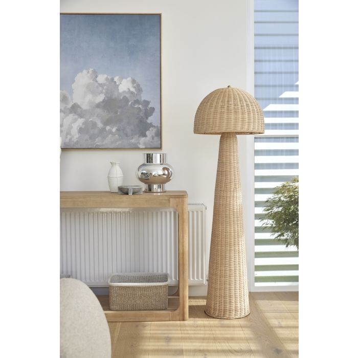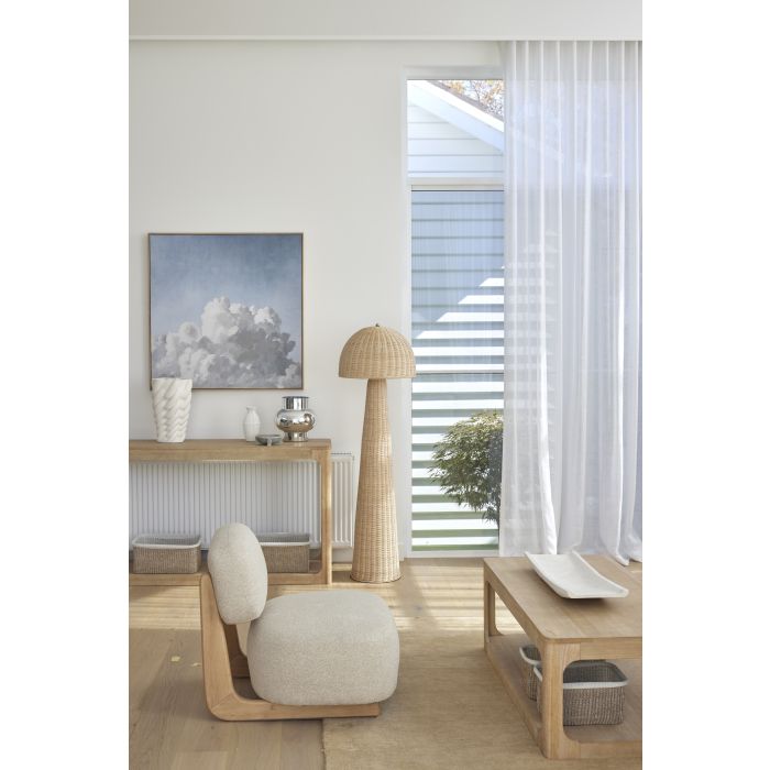 Encased in a natural frame, this piece brings an elegant sense of balance to any room. Hang it in a living area, entryway, or bedroom to elevate your interior with a refined yet tranquil focal point.