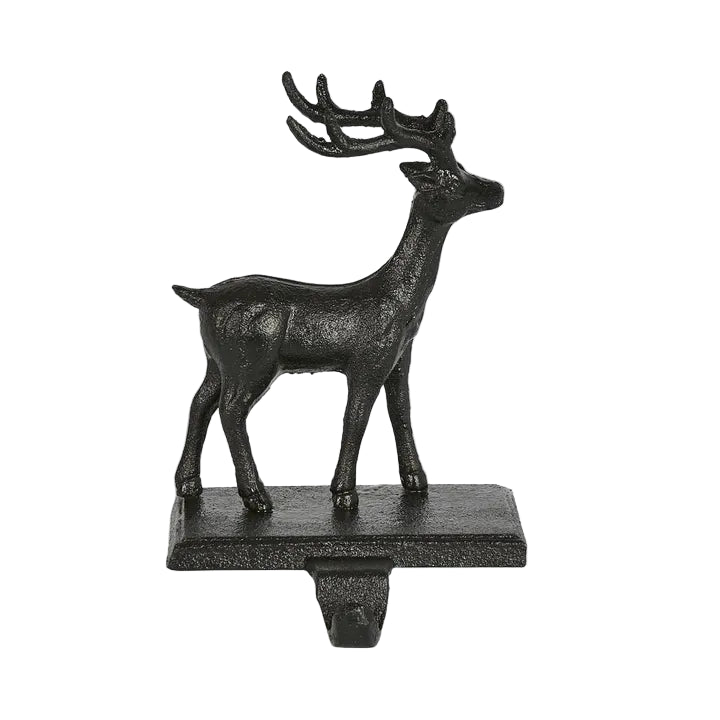 The Deer Stocking Holder in black offers a striking sculptural anchor for your holiday display. Crafted from solid iron, this piece features a beautifully detailed deer poised atop a sturdy platform with integrated hook — designed to hold Christmas stockings with elegance and confidence.